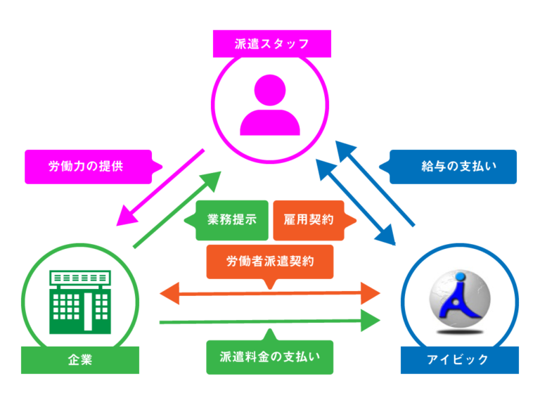 仕事先では業務の指示は派遣先から受け、給与はアイビックから支払われます。